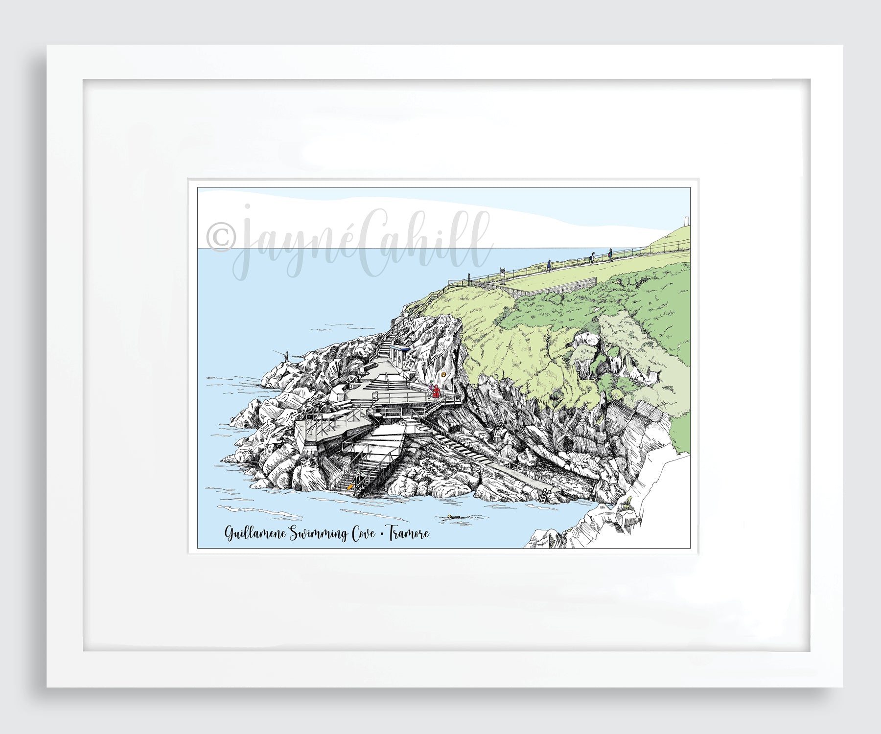 I absolutely loved working on this drawing of the famous Guillamene swimming spot in Tramore! What an amazing feat of man made engineering working alongside the natural environment of the County Waterford and Copper Coast.
