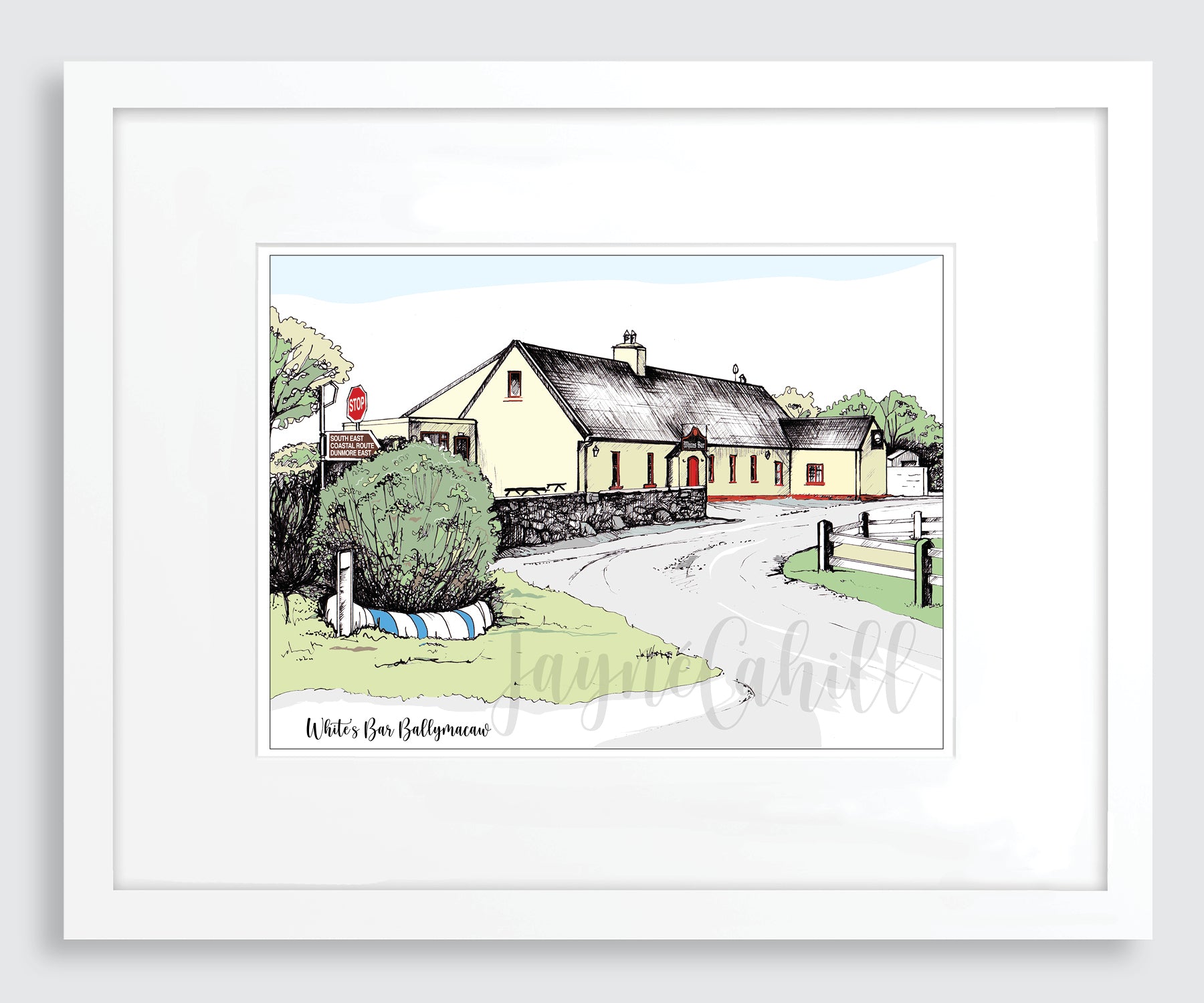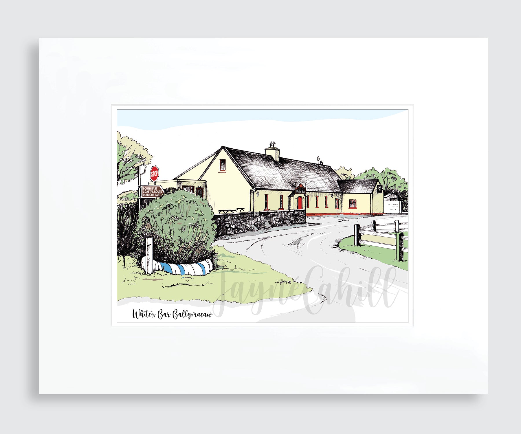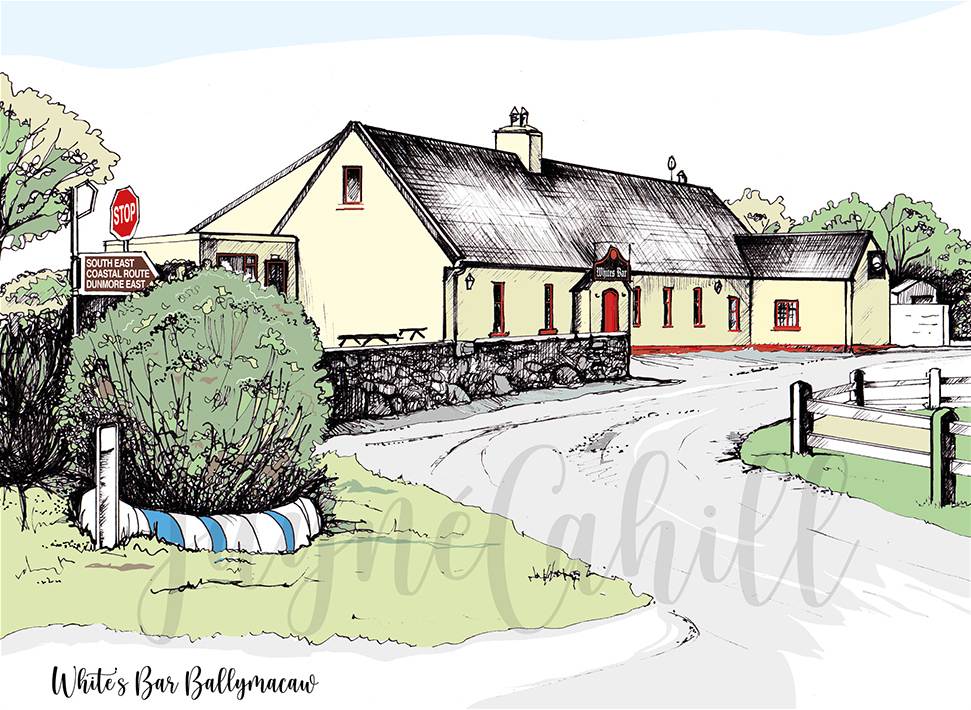Limited edition print of White's Bar, Ballymacaw, near Dunmore East. The bar is now closed, so this picture is sure to bring back many happy memories!
