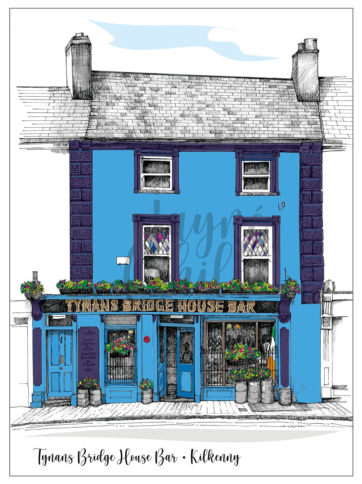 Limited edition print of Tynans Bridge Bar, Kilkenny.