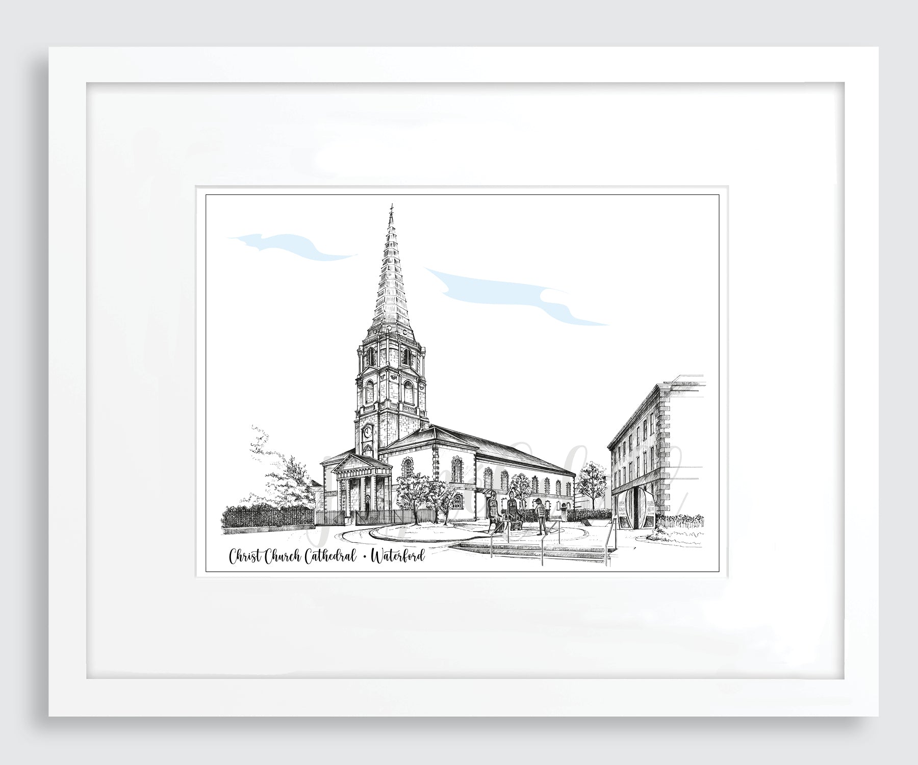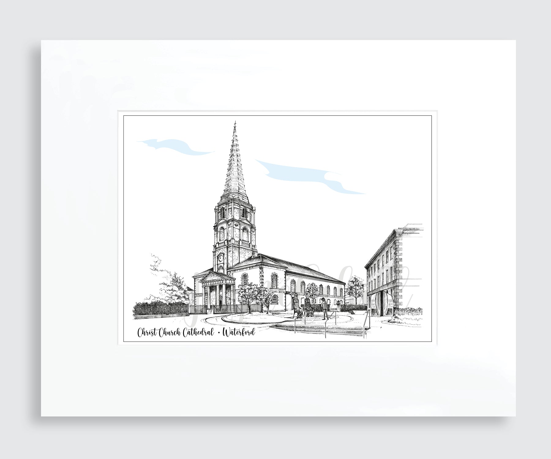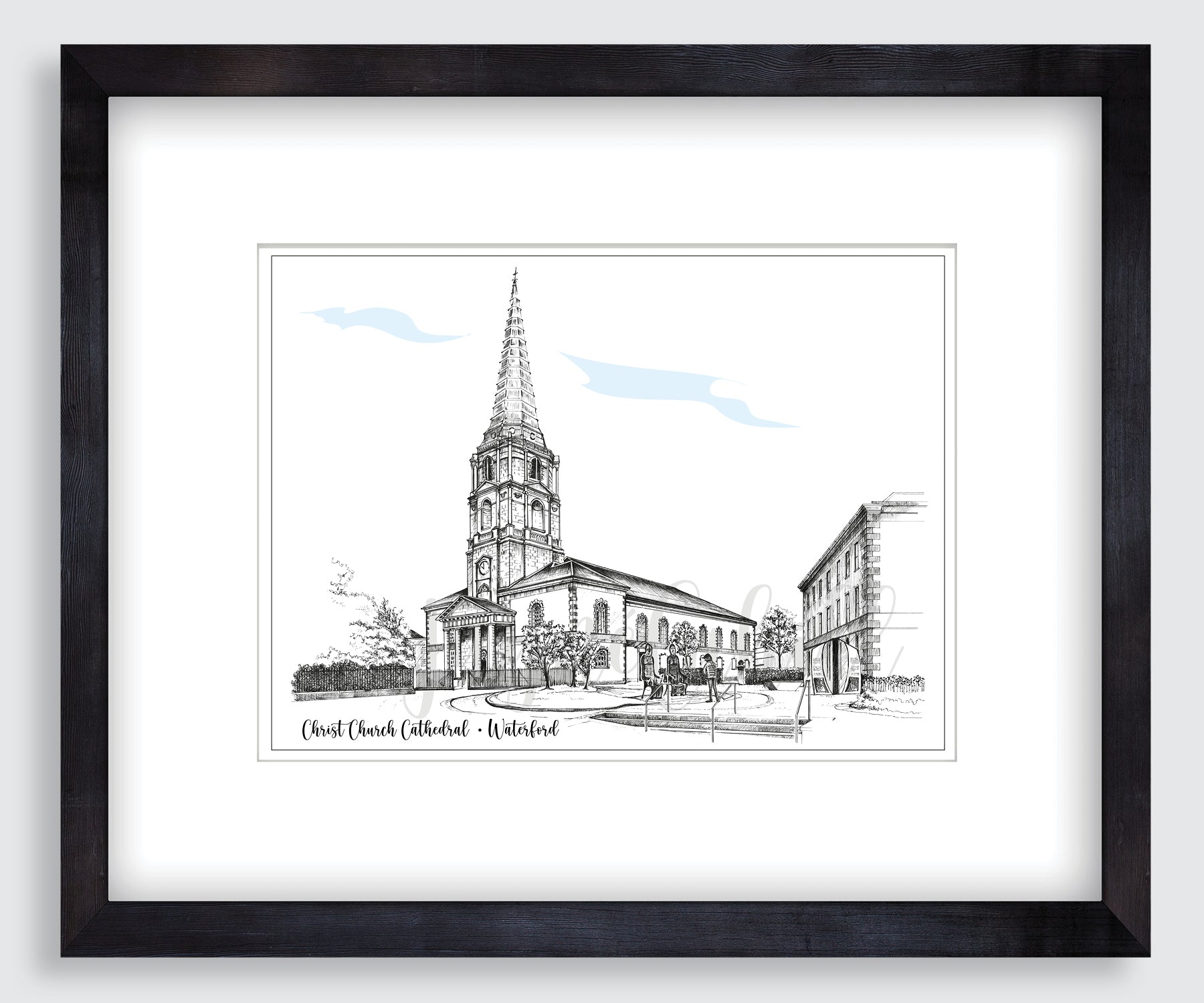 Limited edition signed print of original pen & ink drawing of the Christ Church Cathedral, Waterford, by artist Jayné Cahill.