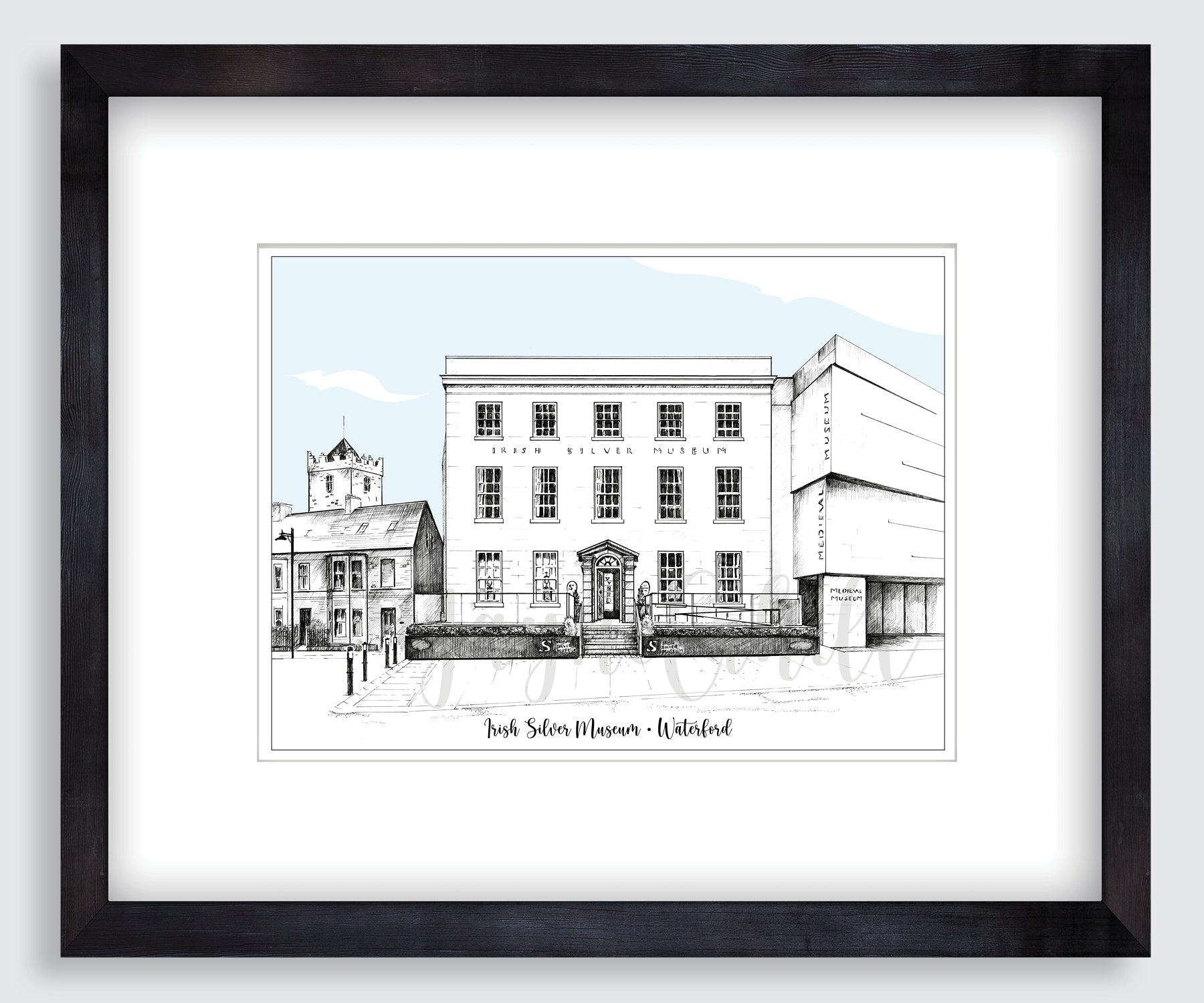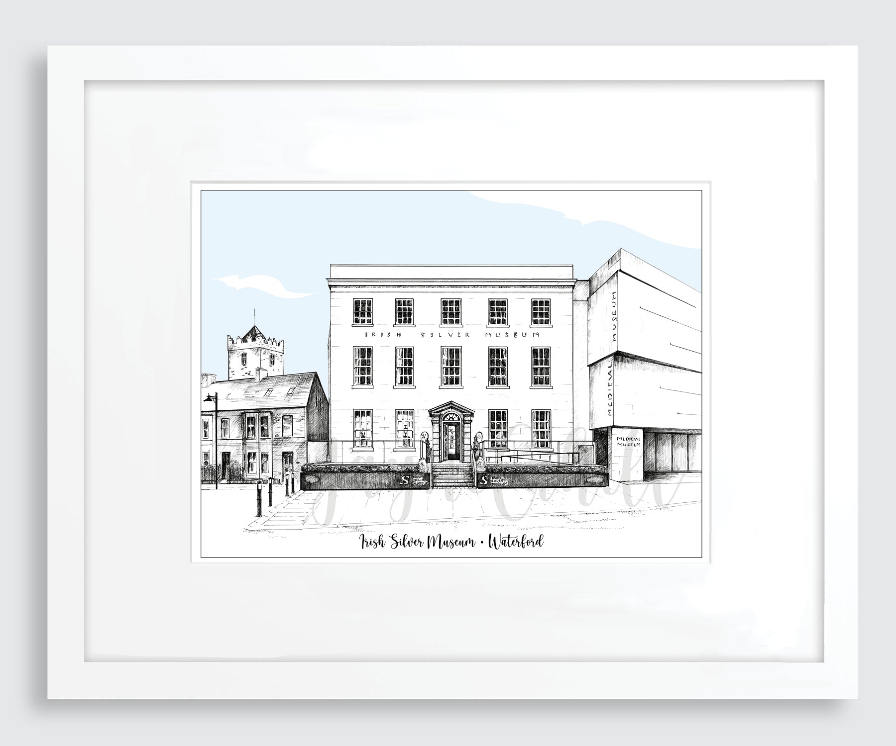 Limited edition signed print of original pen & ink drawing of the Irish Silver Museum, Waterford, by artist Jayné Cahill.