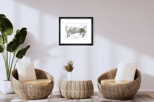 Drawn by hand and shaped with care, each print begins on paper. Through graphic design, it becomes a lasting tribute to place and feeling.