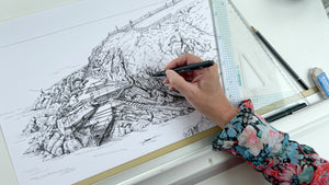 I visit each place to sketch details and take photographs, then develop the finished drawing back in my studio.